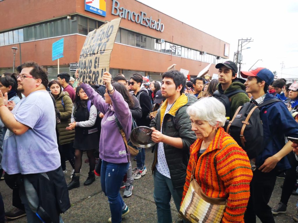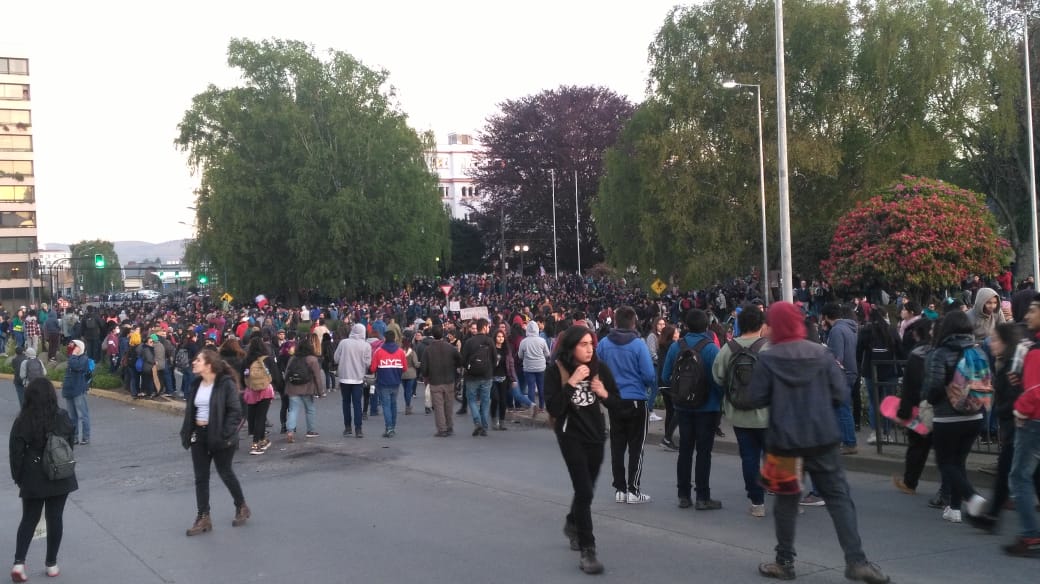 Una multitud se reunió en torno a la Plaza de Armas de Valdivia el día de ayer, quienes protestaron contra la situación actual que se vive en el país.